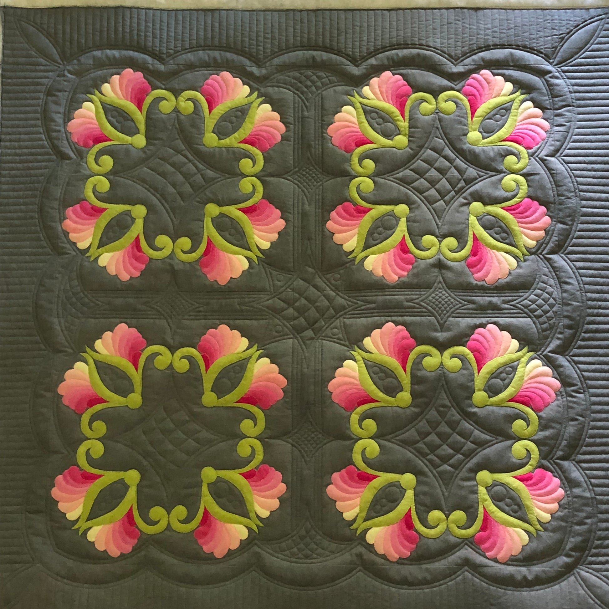 The quilt is 42" x 42". A quilting diagram has also been included in the pattern or feel free to quilt as desired.
